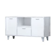 Тумба Эго Т-2, с 2-я дв. (на ножках) Бетон светлый/Белый глянец