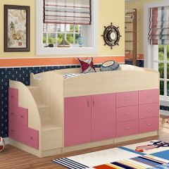 Кровать-чердак "Дюймовочка-4"  Дуб молочный/Розовый | фото