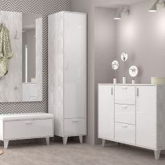 Прихожая Эго, модульная (на ножках) Бетон светлый/Белый глянец